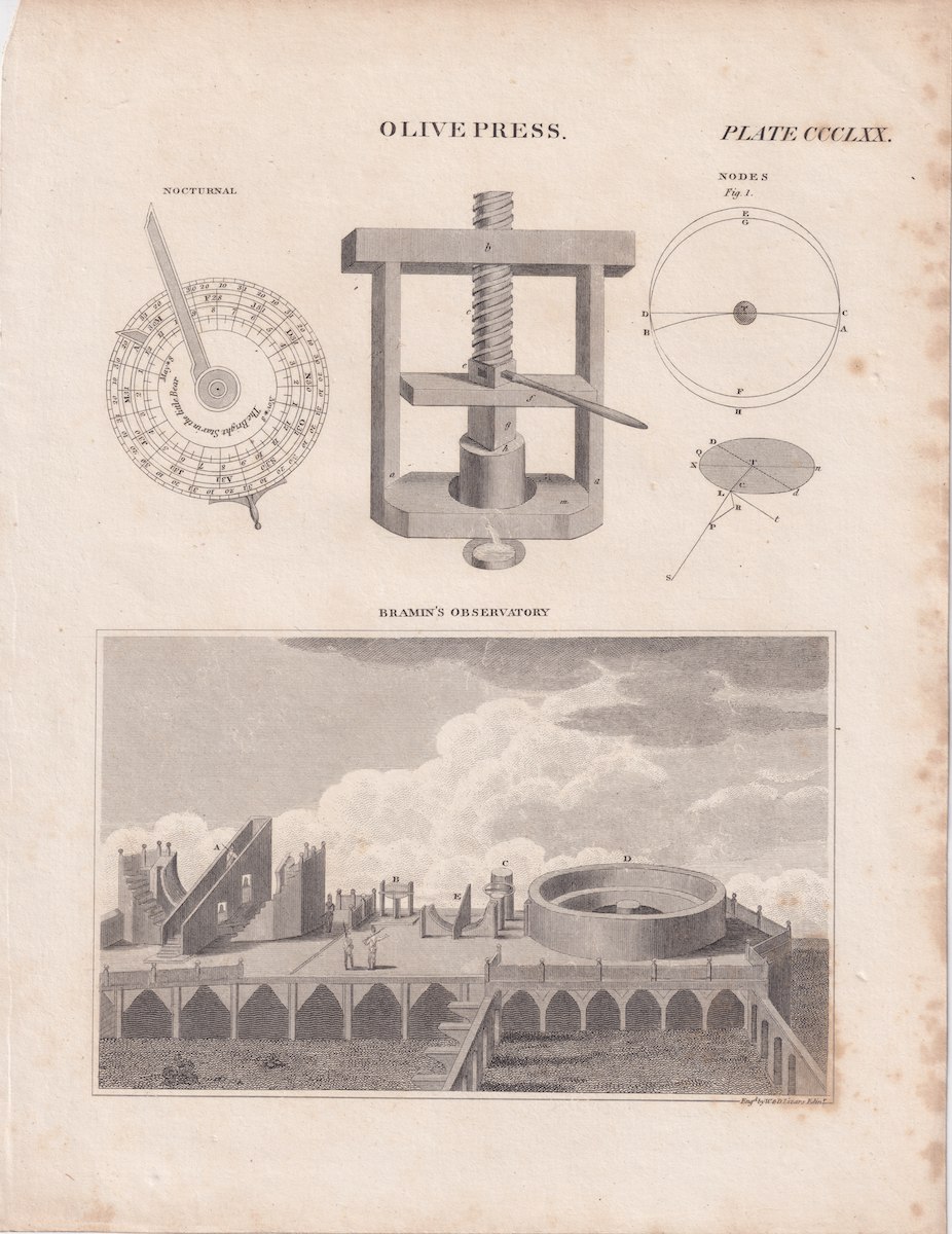 Antique Engraving Print, Olive Press, 1809, credit Antiche Curiosità©