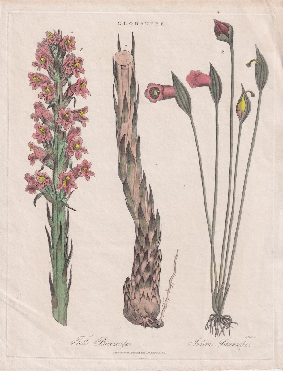 Antique Engraving Print, Orobanche, 1820, 21.5 x 28 cm.