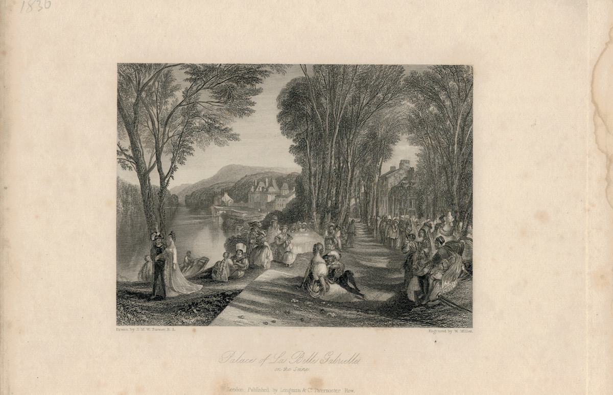 Antique Engraving Print, Palace of La Belle Gabrielle on the Seine, 1836, 22,9 x 15,7 cm. Engraved by W. Miller.