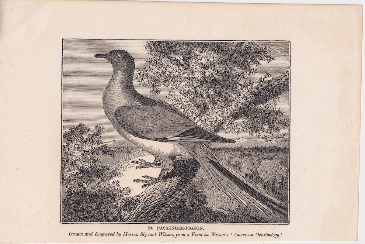 Antique Engraving Print, Passenger-Pigeon, 1840 ca. credit Antiche Curiosità©