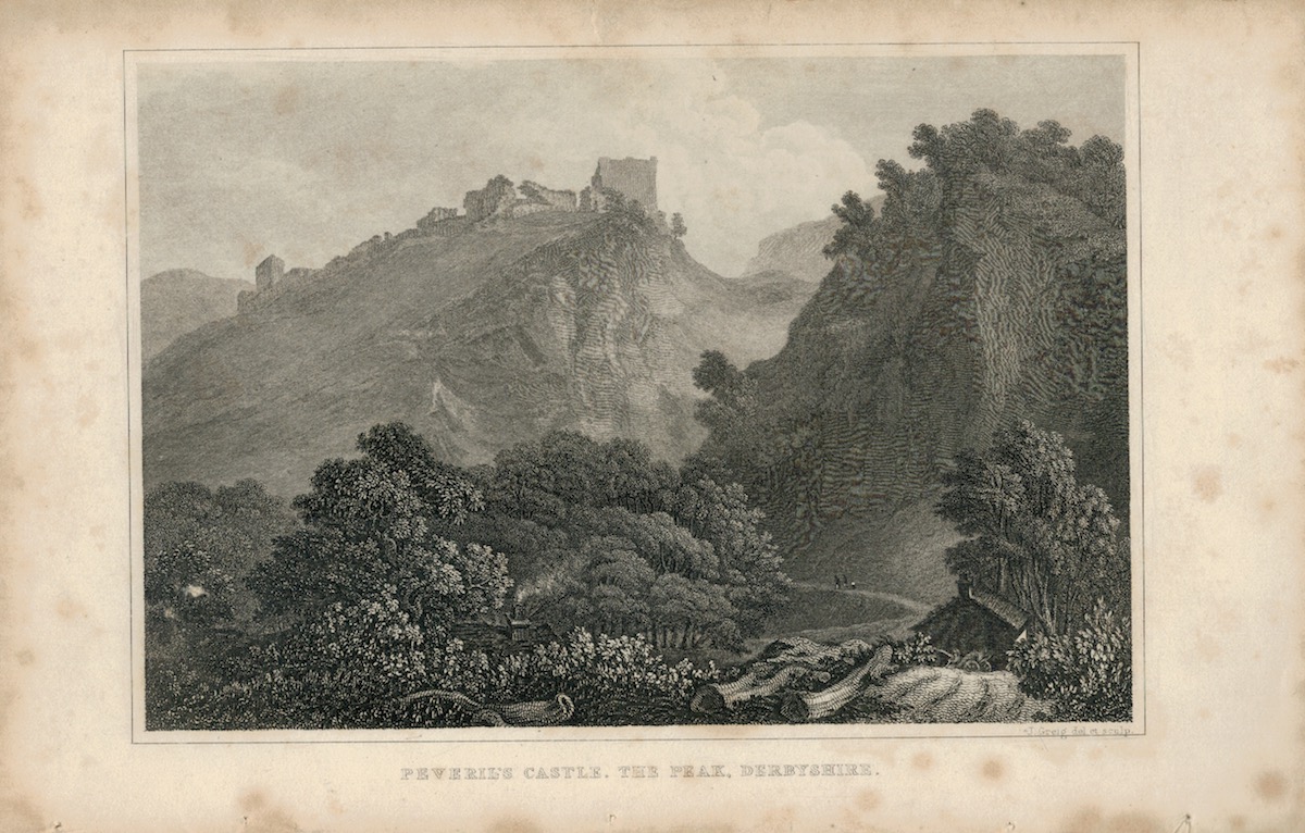 Antique Engraving Print, Peveril’s Castle, the Peak, Derbyshire, 1830, credit Antiche Curiosità©