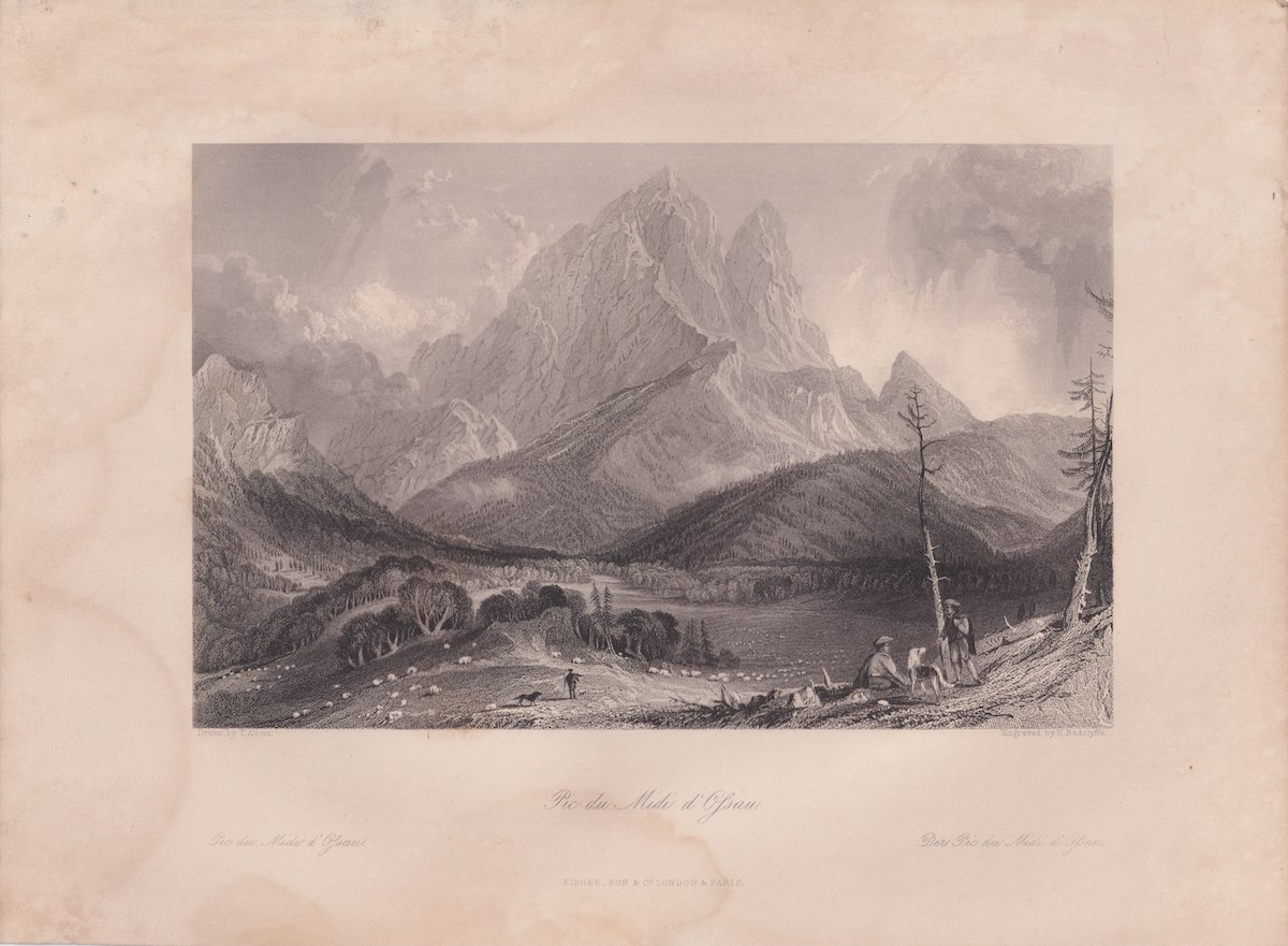 Antique Engraving Print, Pic du Midi d’Ossau, 1835, credit Antiche Curiosità©