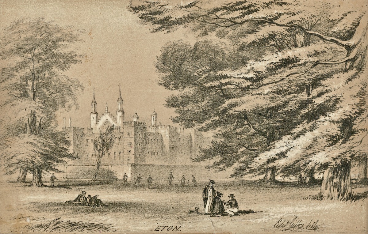 Antique Engraving Print, Picturial Circular, Eton, 1844