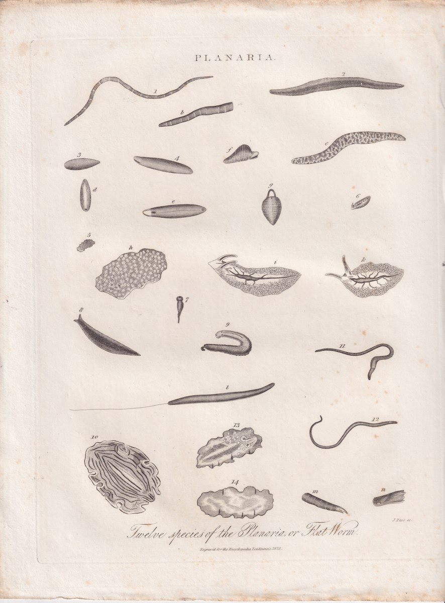 Antique Engraving Print, Planaria, 1825, credit Antiche Curiosità©
