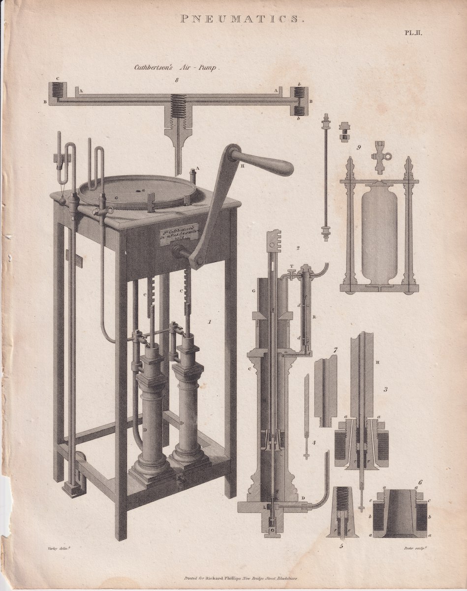 Antique Engraving Print, Pneumatics, 1815 ca. credit Antiche Curiosità©