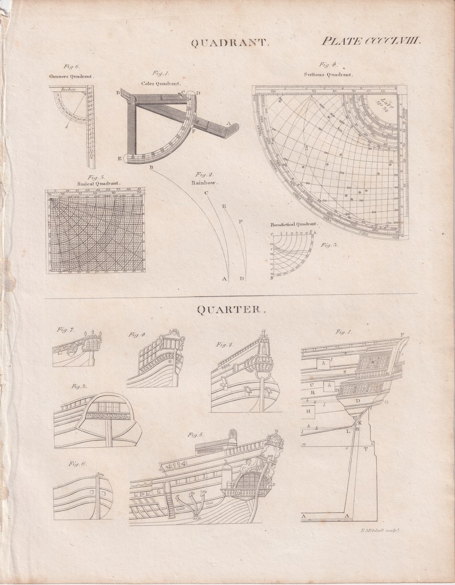 Antique Engraving Print, Quadrant, Quarter, 1809, credit Antiche Curiosità©