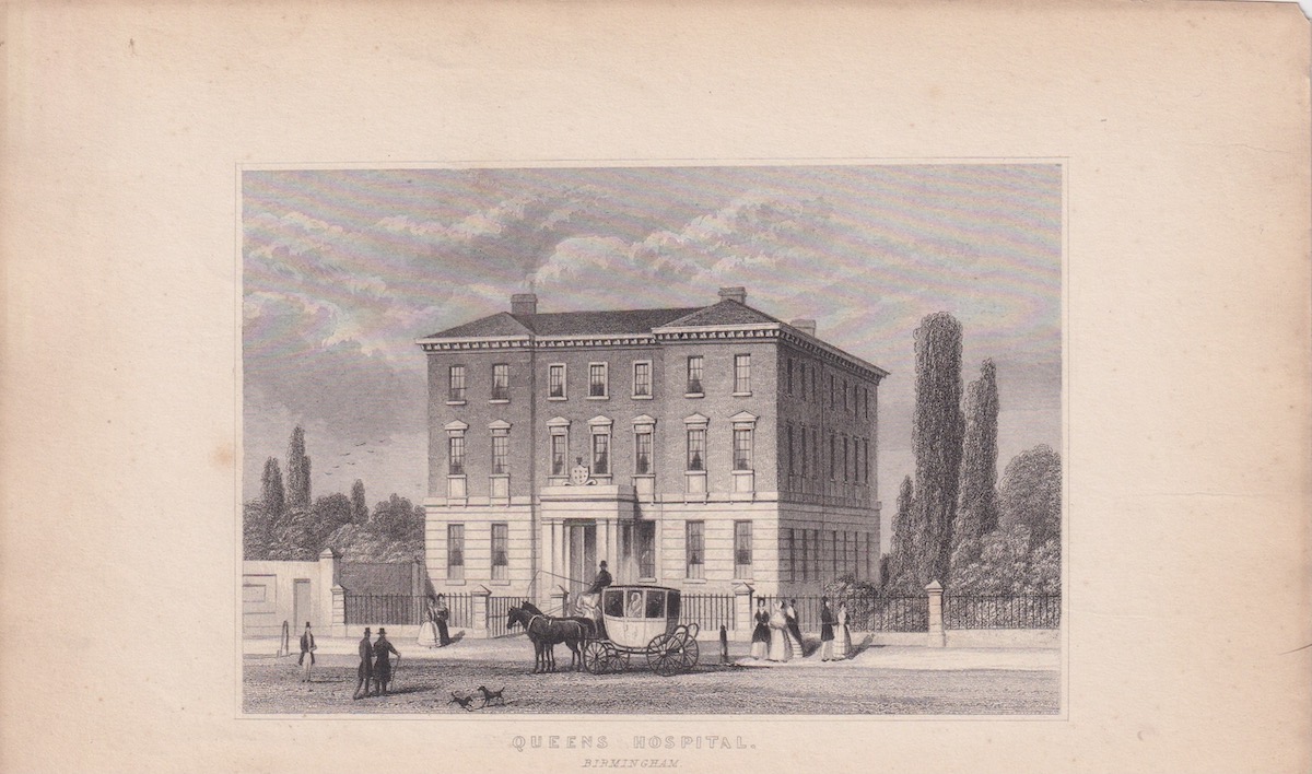 Antique Engraving Print, Queens Hospital, 1840 ca.