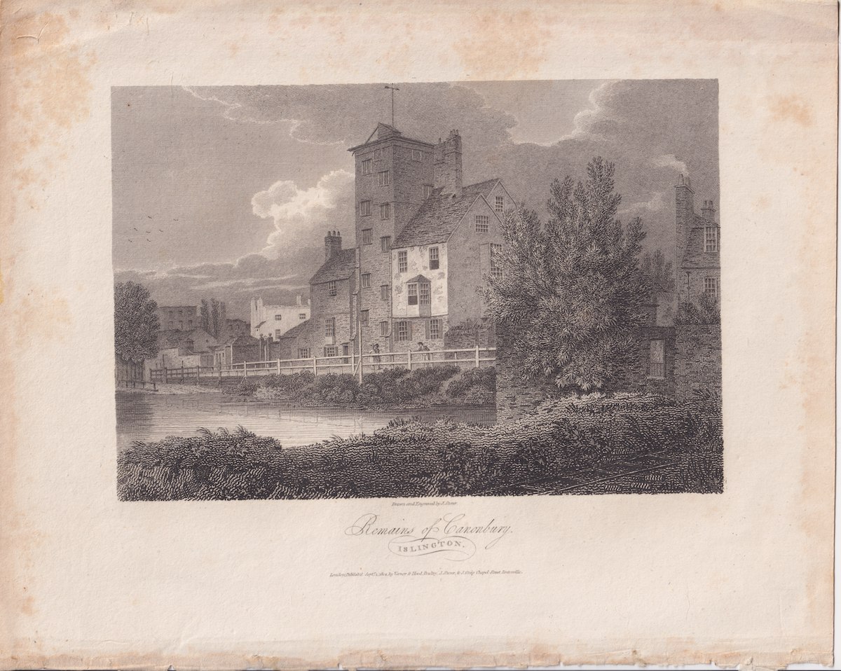 Antique Engraving Print, Remains of Canonbury, Islington, 1804, credit Antiche Curiosità©