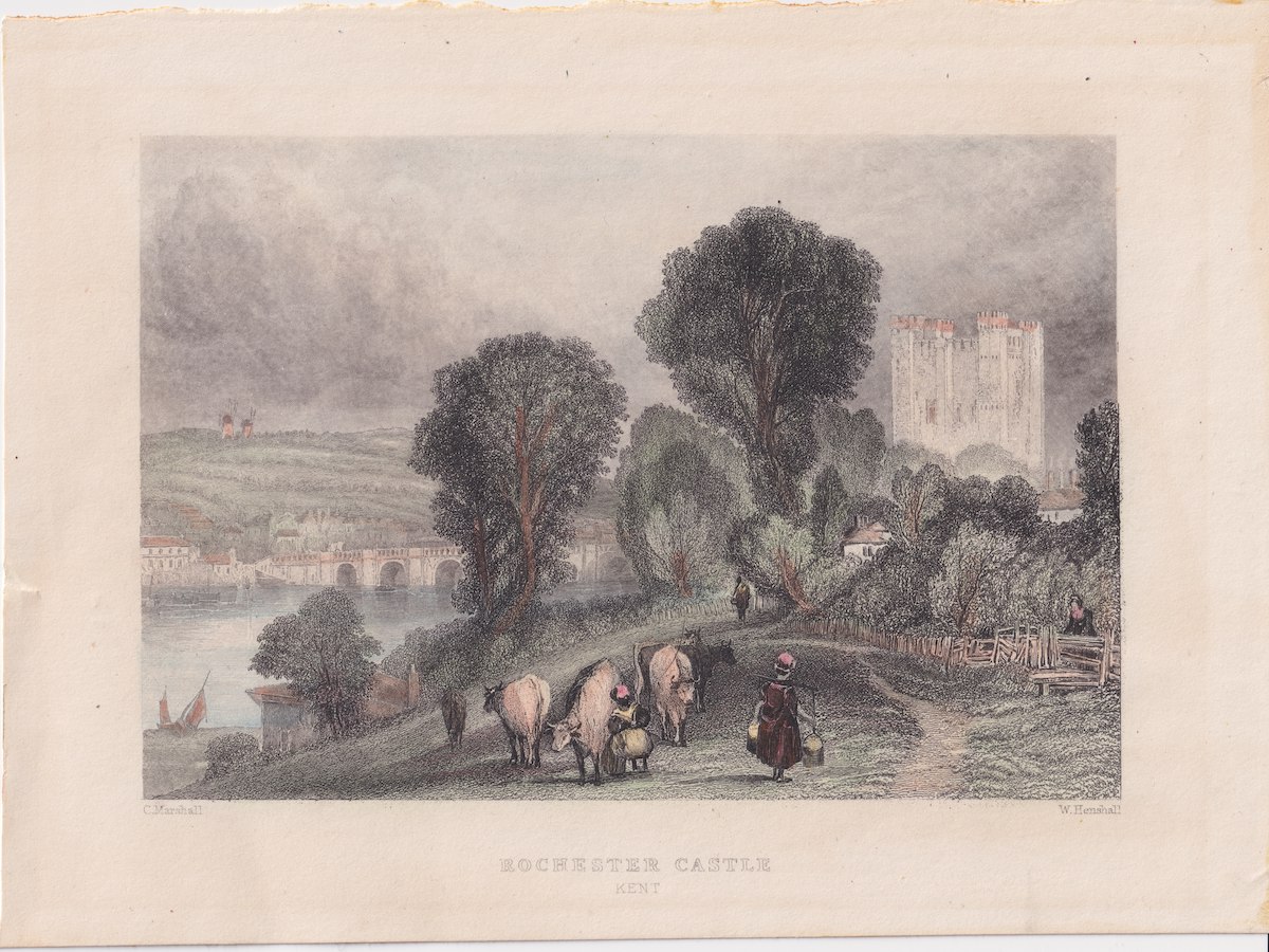Antique Engraving Print, Rochester Castle, 1830 ca.