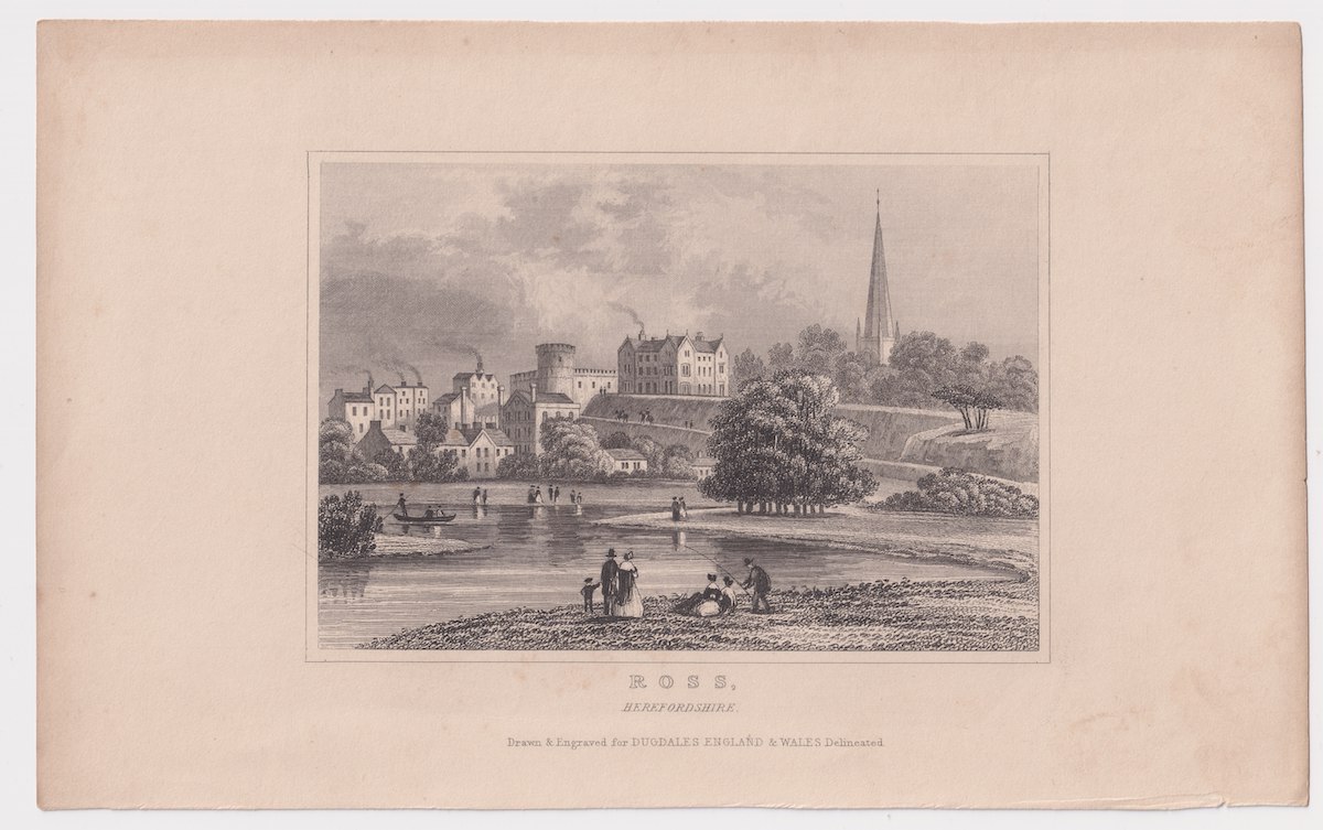 Antique Engraving Print, Ross, Herefordshire, 1845, 21,6 x 13,5 cm. Dugdales.