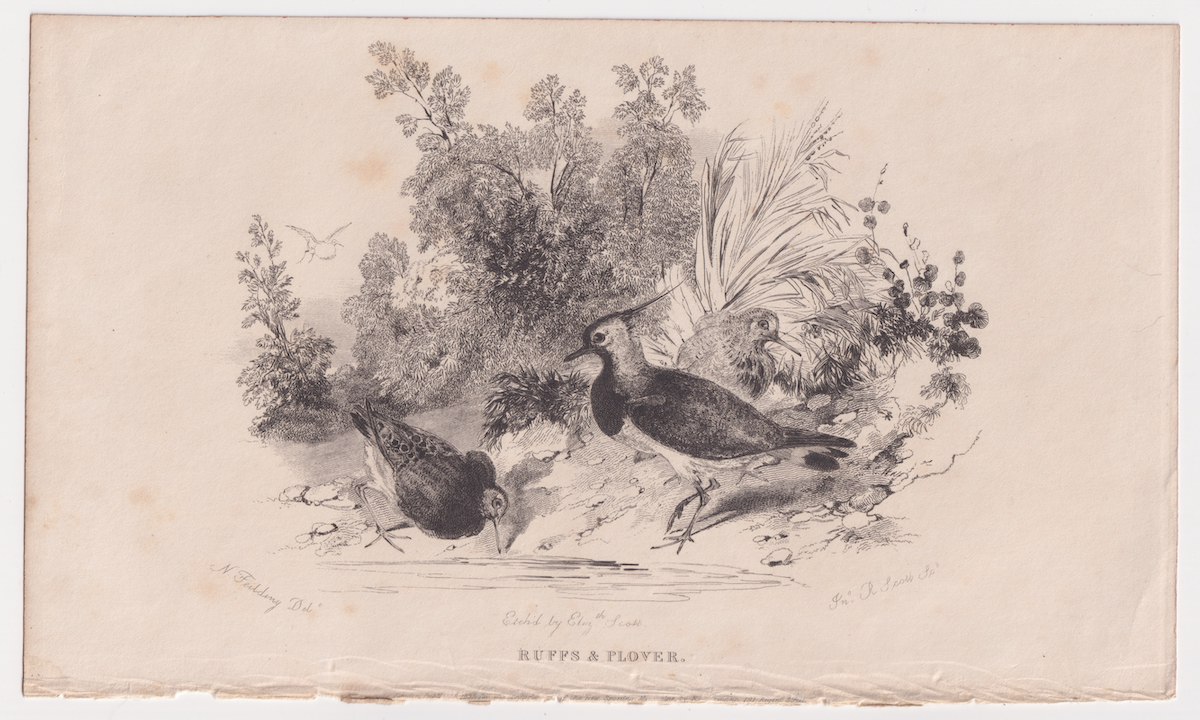 Antique Engraving Print, Ruffs & Plover, 1843, 13 x 21.7 cm.