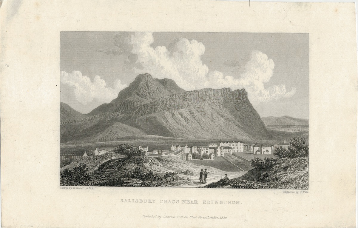 Antique Engraving Print, Salisbury Crags near Edinburgh, 1829, credit Antiche Curiosità©