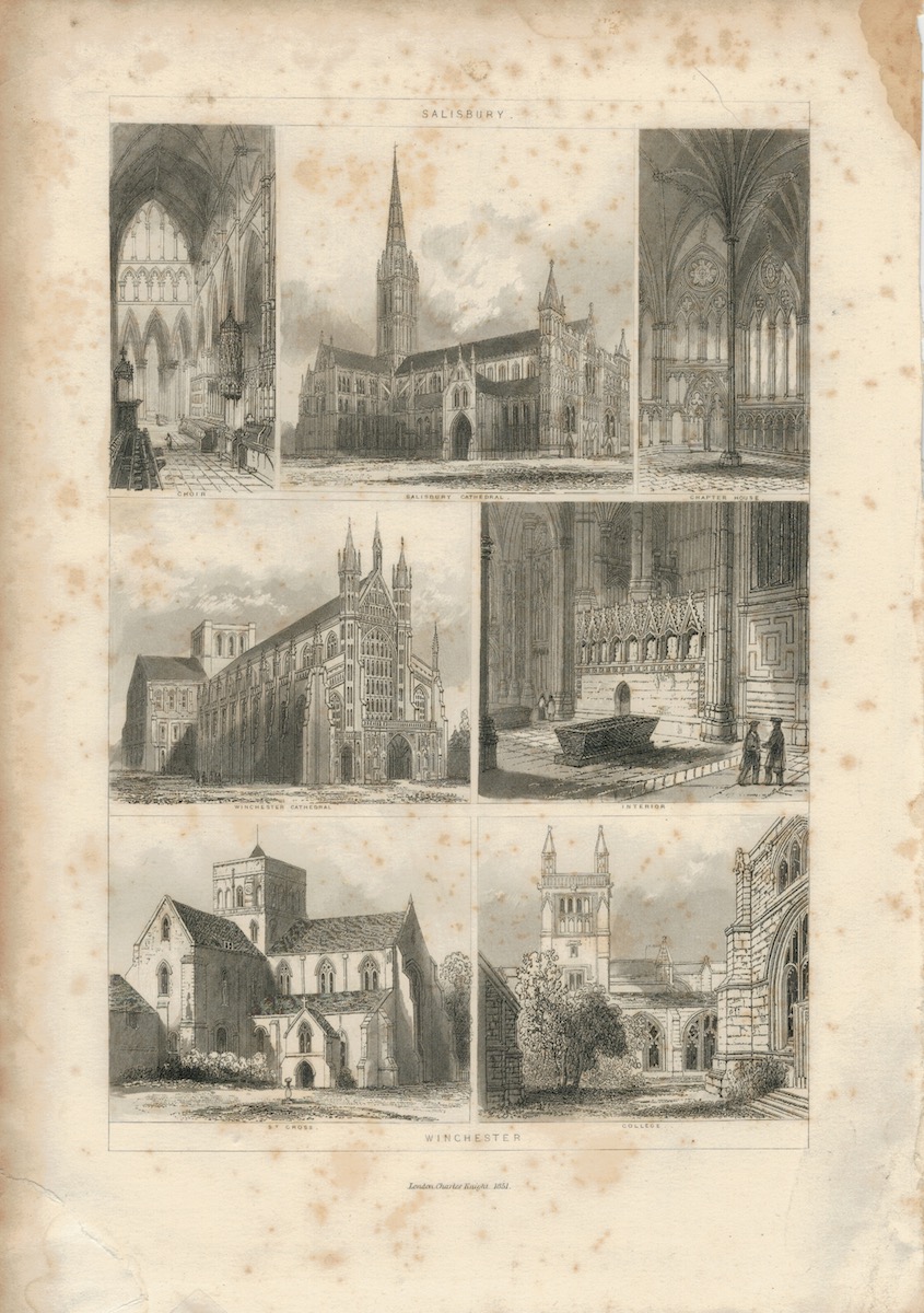 Antique Engraving Print, Salisbury, Winchester, 1851, credit Antiche Curiosità©