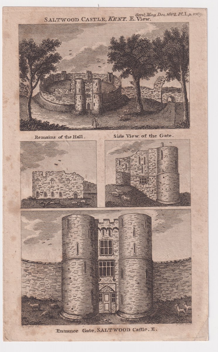 Antique Engraving Print, Saltwood Castle, 1802, 18,6 x 11,5 cm.