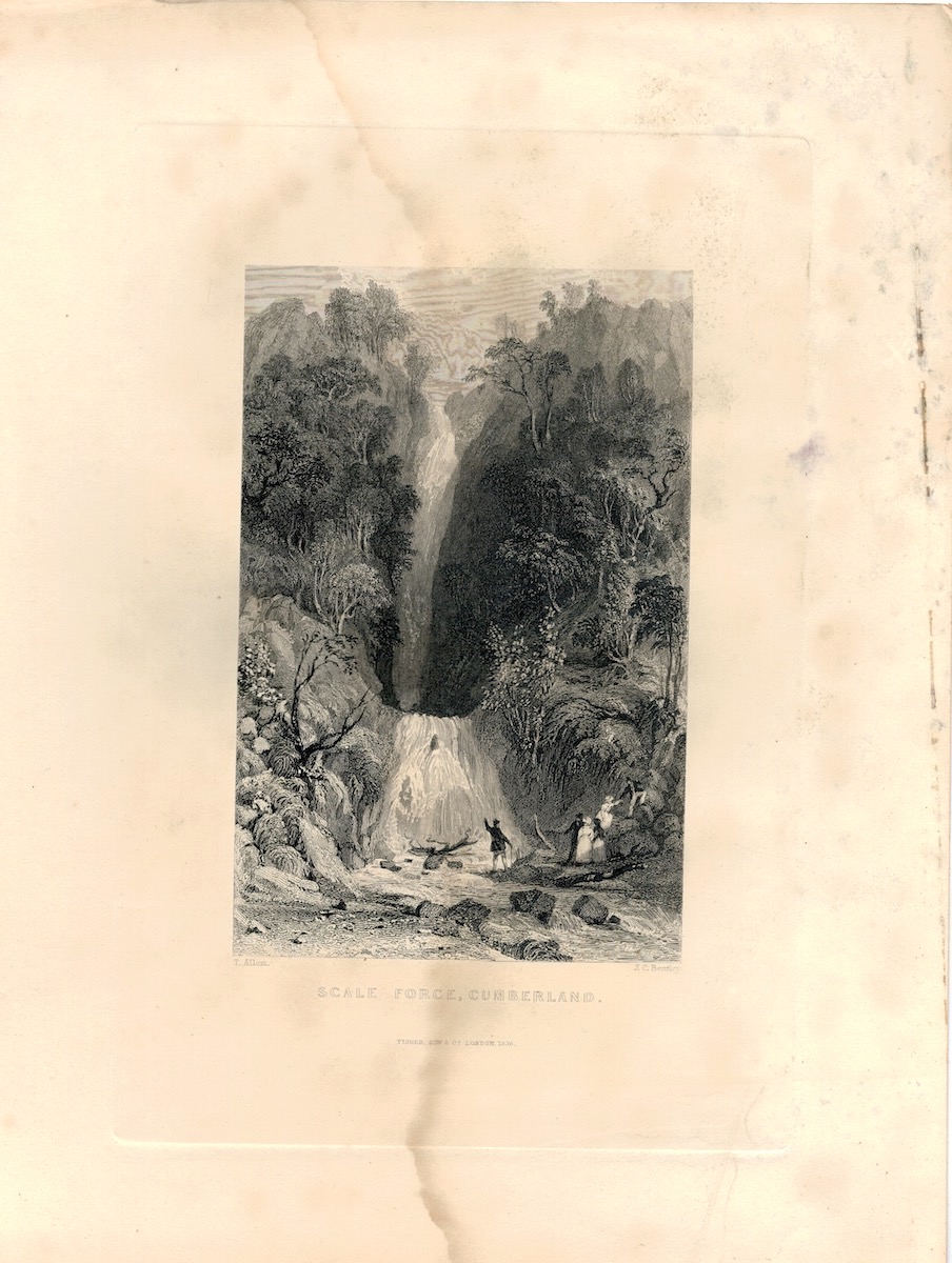 Antique Engraving Print, Scale Force, Cumberland, 1836, engraved J. C. Bentley, Fisher Son & Co. 27,5 x 21,7 cm.