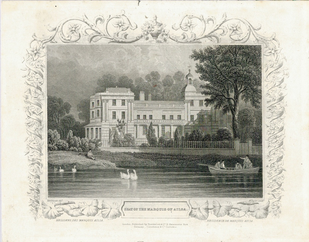 Antique Engraving print, Seat of the Marquis of Ailsa, 1835, London, published by Tombleson & Co., cm. 21 x 17.