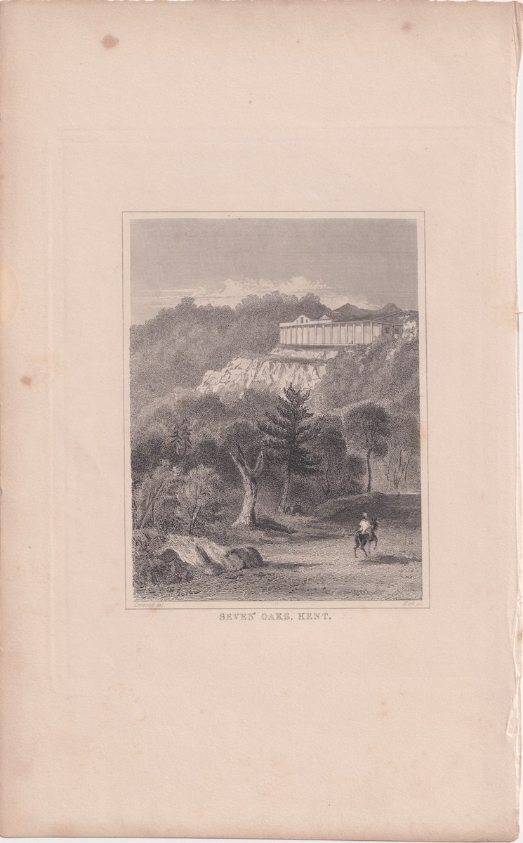 Antique Engraving Print, Seven Oaks, Kent, 1845, 22 x 13,5 cm.