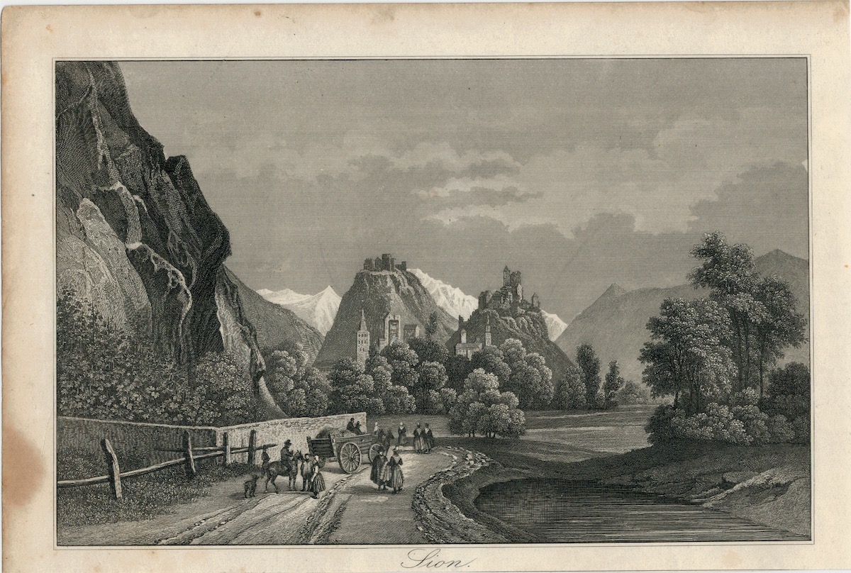 Antique Engraving Print, Sion, 1830 ca., credit Antiche Curiosità©