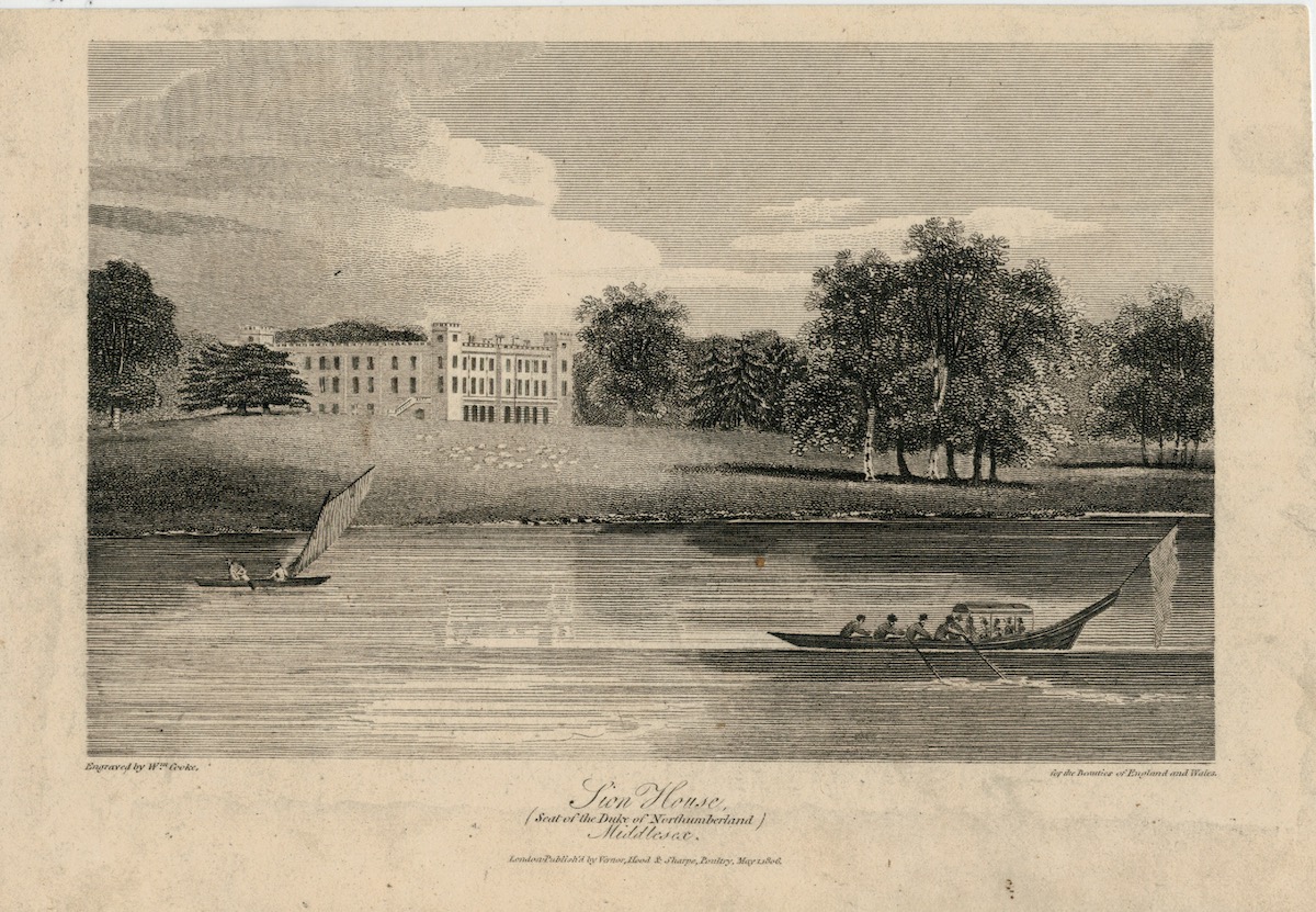 Antique Engraving Print, Sion House, Middlesex, 1806, 17,8 x 12,4 cm. Engraved by William Cooke.