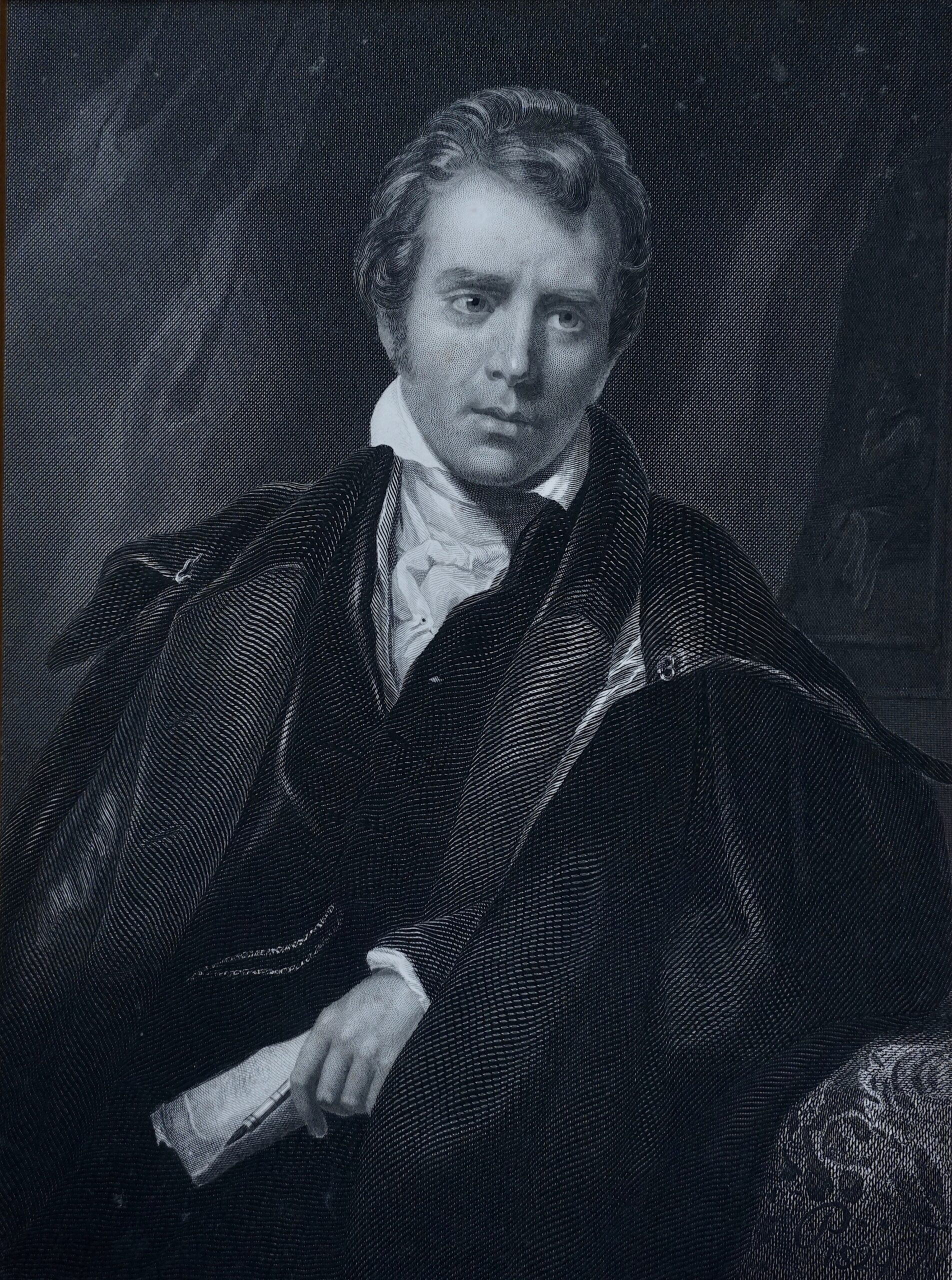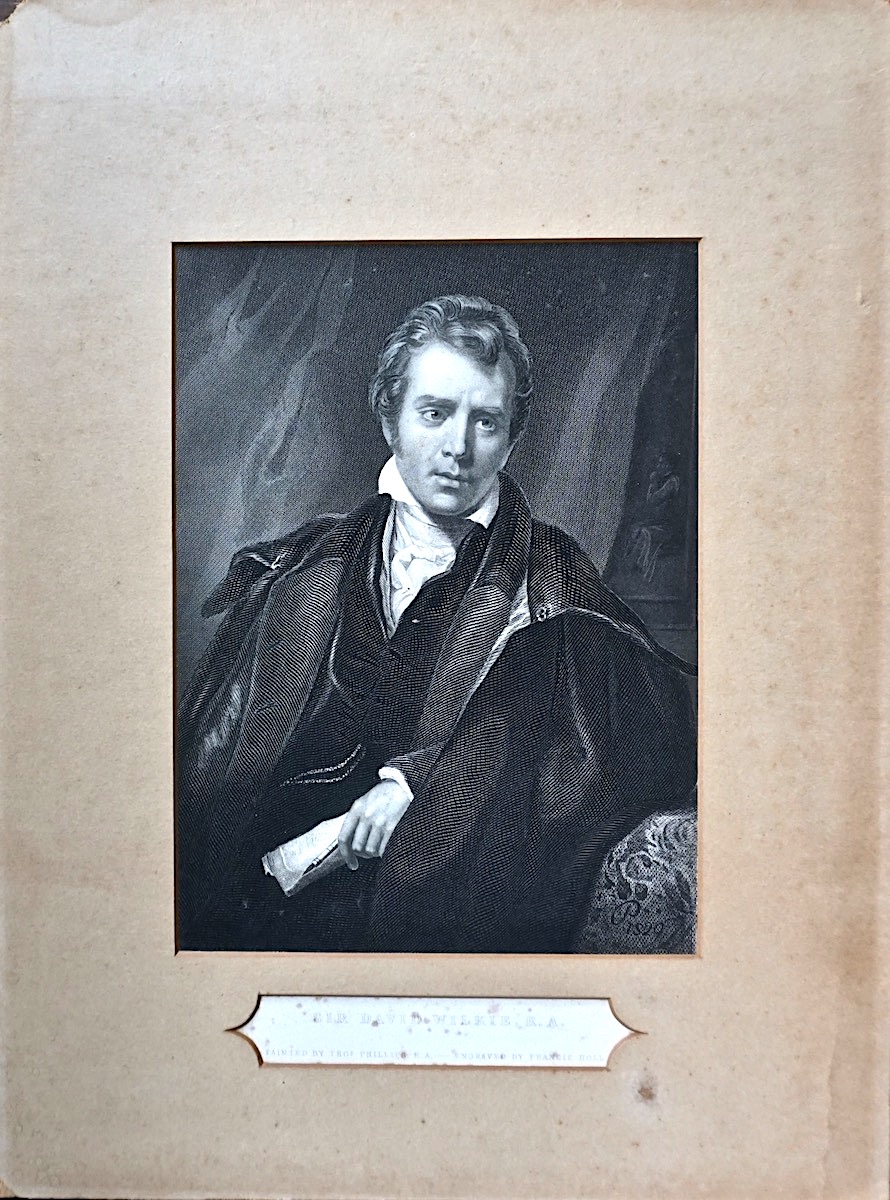 Portrait of Sir David Wilkie, RA. Painted by Thomas Phillips.  This is a black and white engraving from The Collection of Wilkie Gallery by Sir David Wilkie, R.A. Published by George Virtue, London and New York, 1845, cm. 39 x 30.