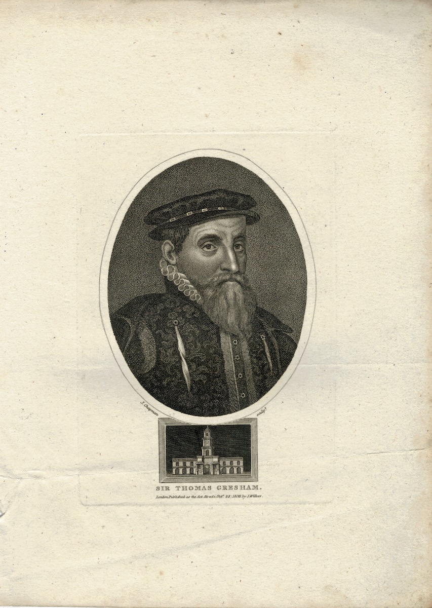 Antique Engraving Print, Sir Thomas Gresham, 1806