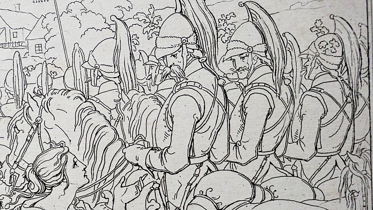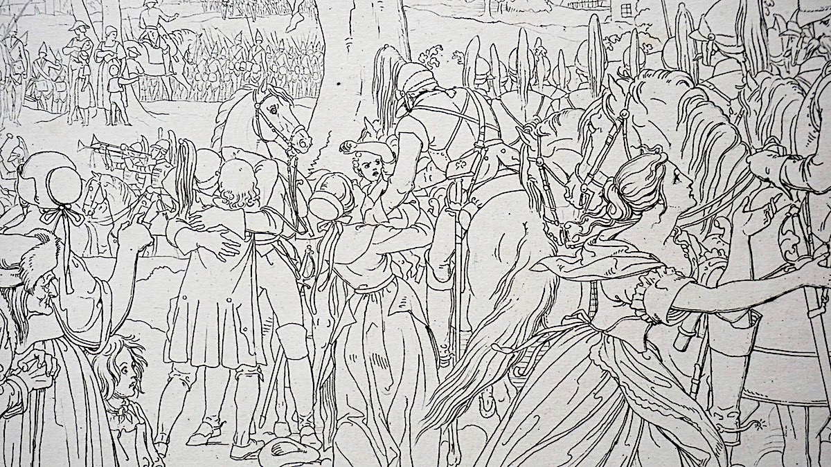 Antique Engraving print (Soldiers in the village), 1820, credit Antiche Curiosità©