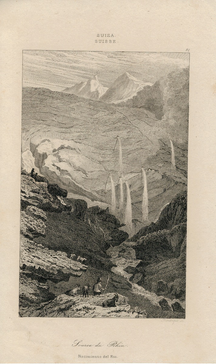 Antique Engraving Print, Source du Rhin, 1830, credit Antiche Curiosità©