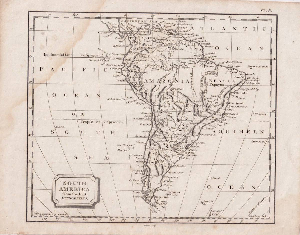Antique Engraving Print, South America from the best Authorities, 1806, credit Antiche Curiosità©