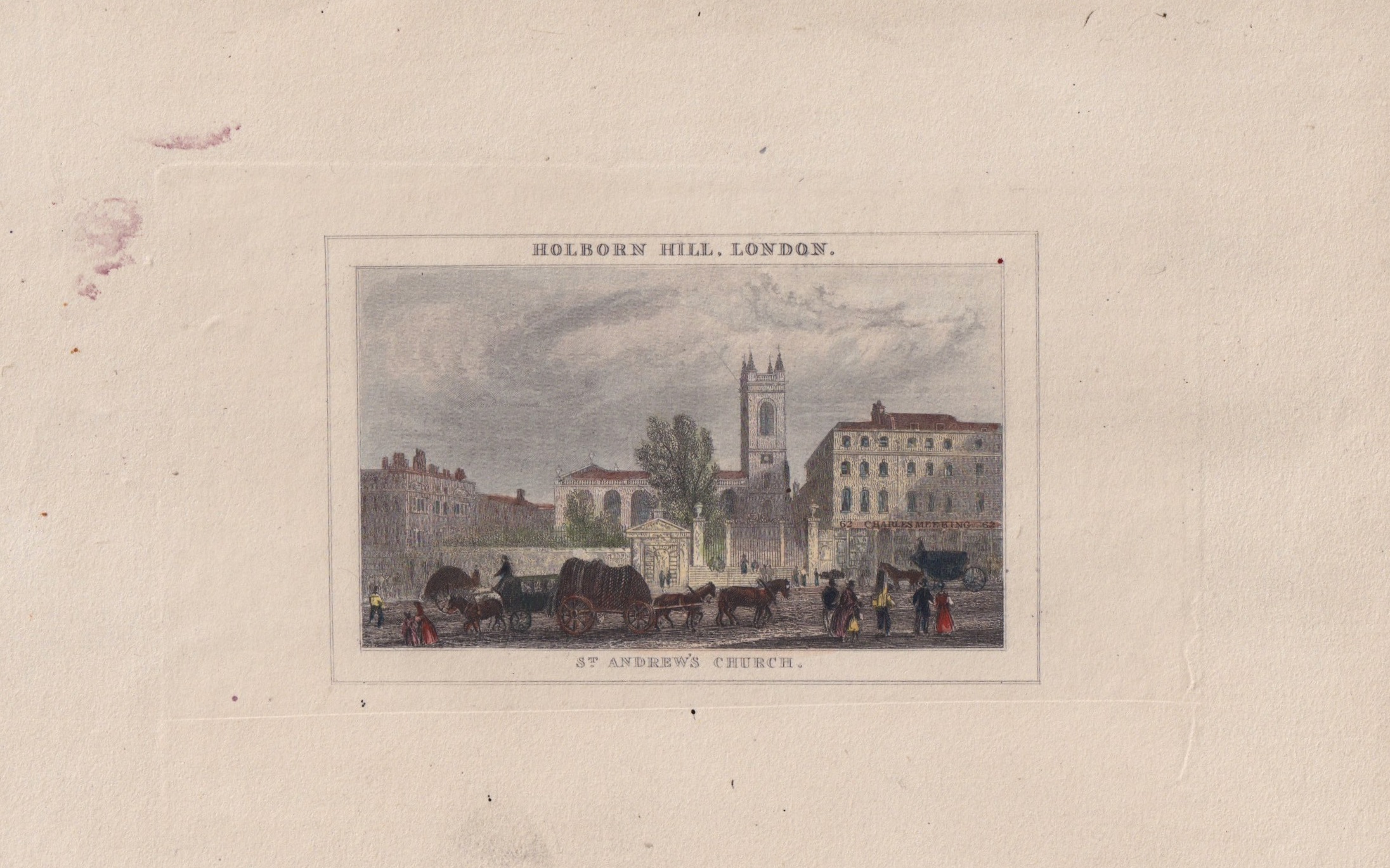 Antique Engraving Print, St. Andrew’s Church, Holborn Hill, London, 1850, ca. 20,5 x 13,6 cm.