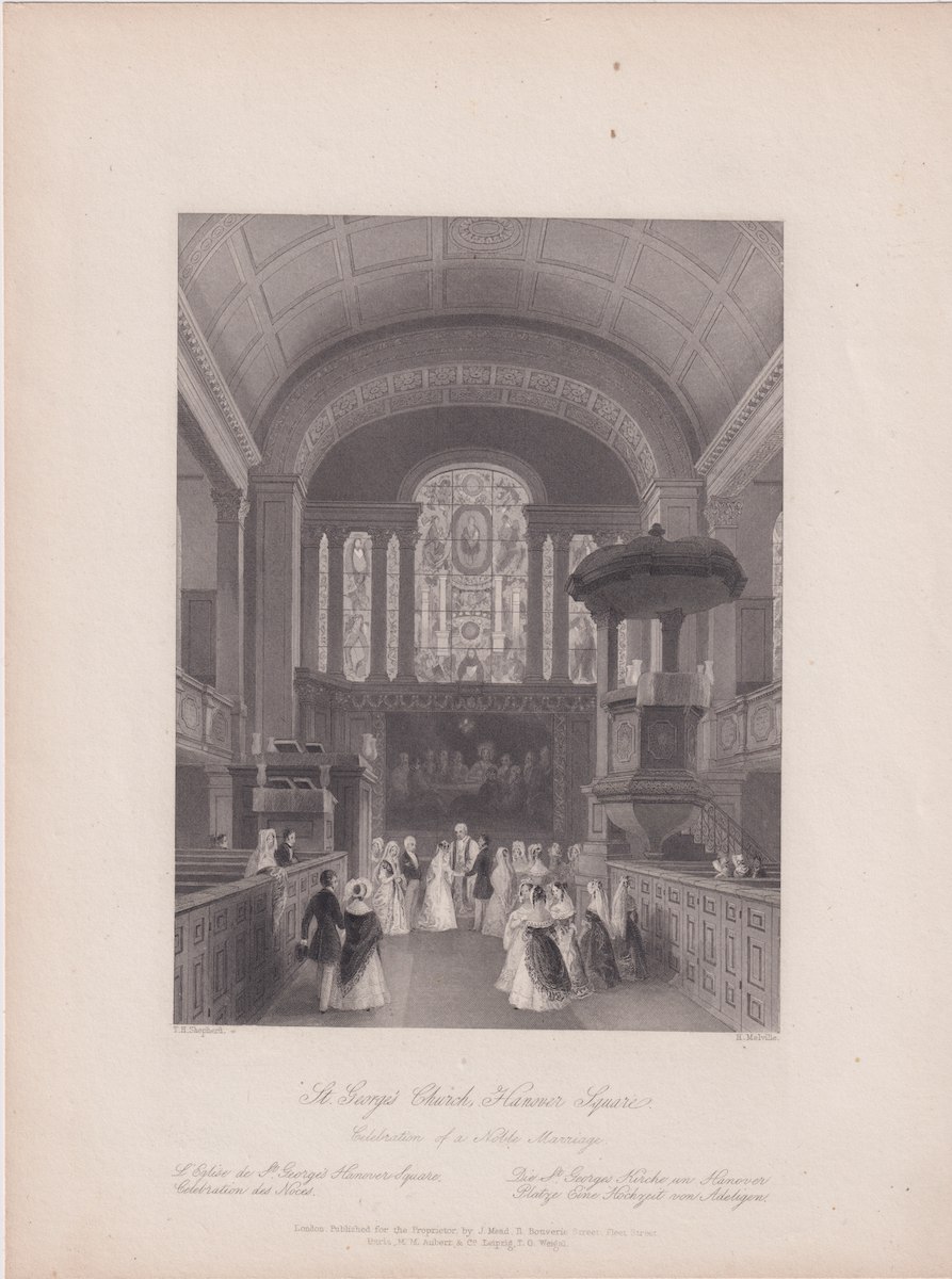 Antique Engraving Print, St. George’s Church, Hanover Square, 1841, credit Antiche Curiosità©