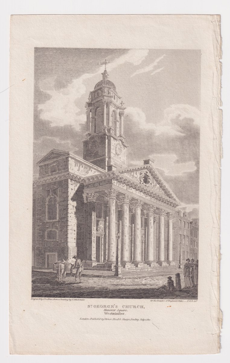Antique Engraving Print, St. George’s Church, Westminster, 1810
