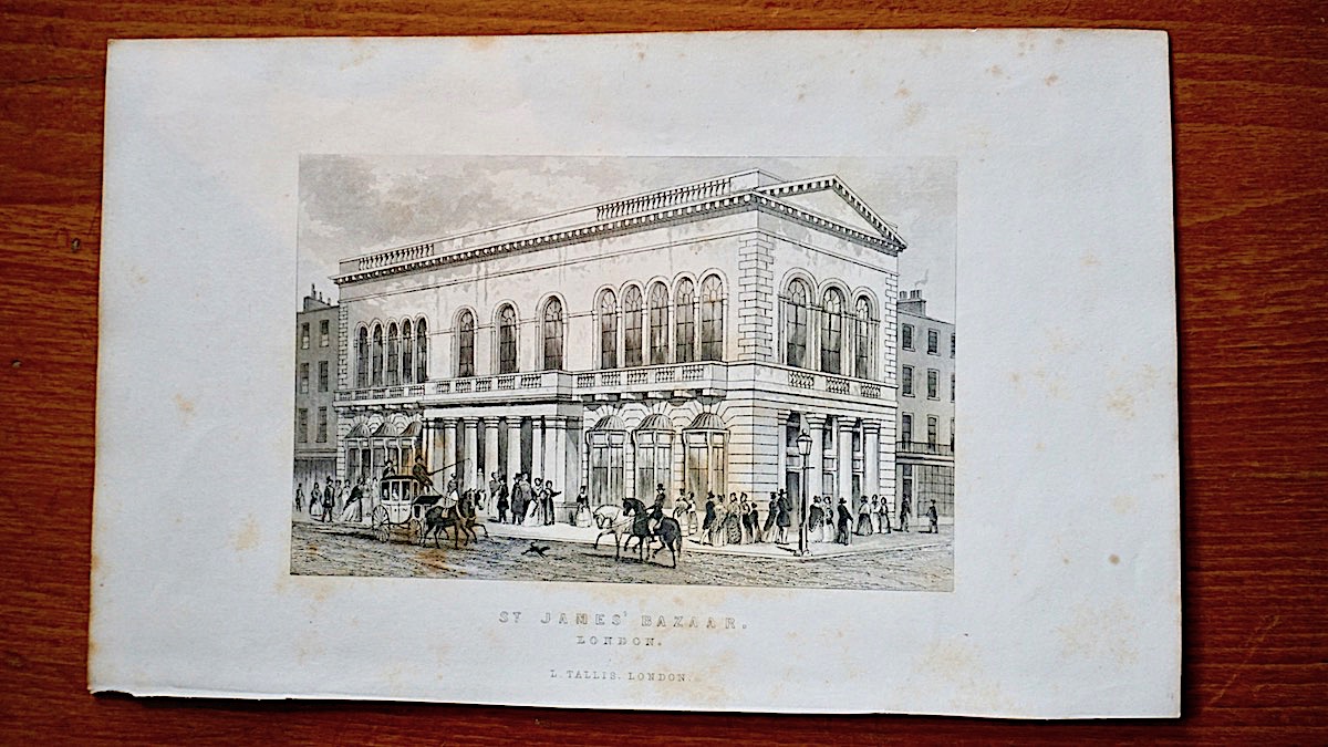 Antique Engraving Print, St. James’ Bazaar, 1849, credit Antiche Curiosità©
