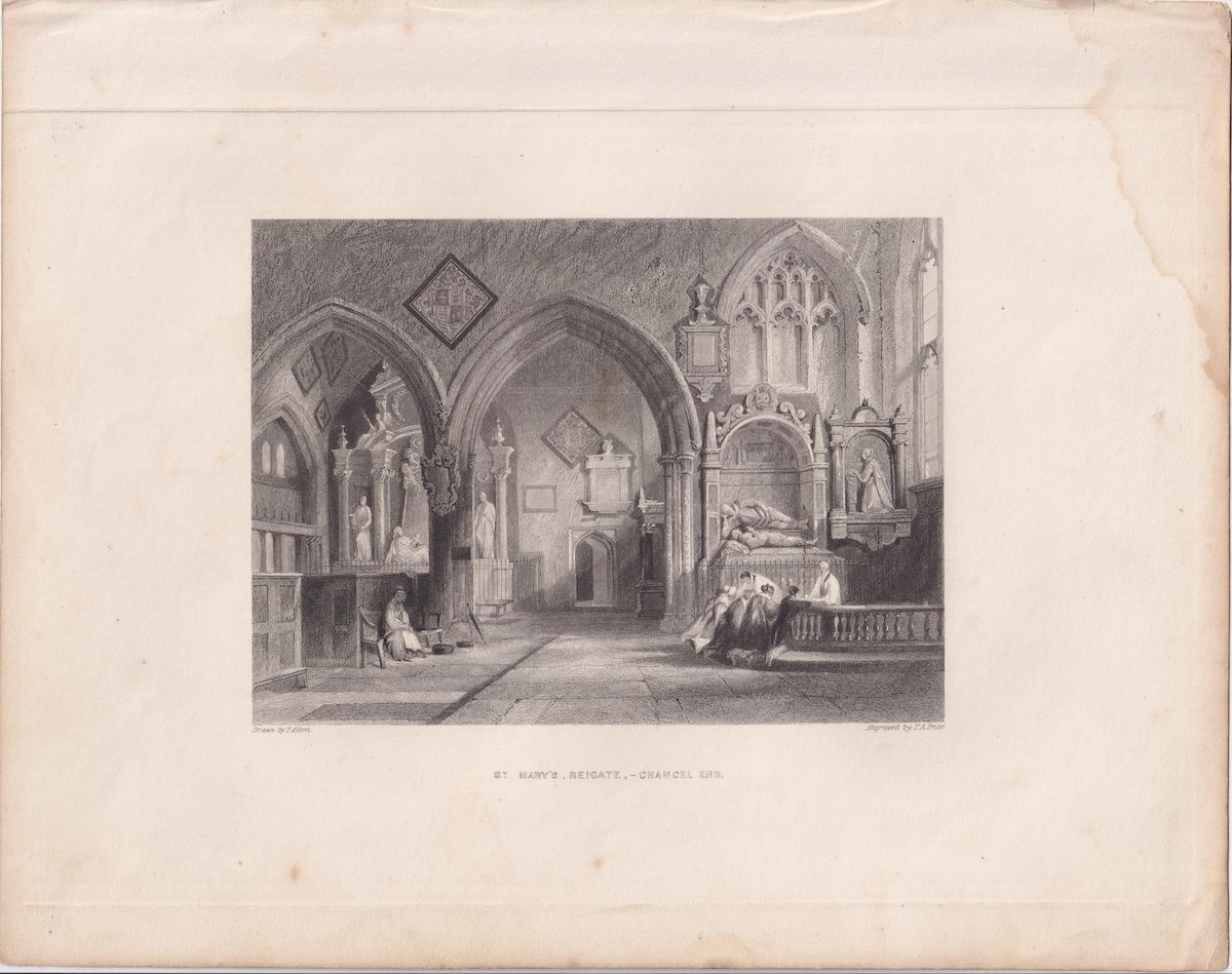 Antique Engraving Print, St. Mary’s, Reigate Chancel End, 1841, credit Antiche Curiosità©