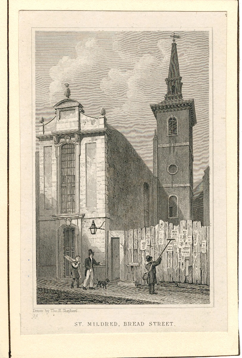 Antique Engraving Print, St, Mildred, Bread Street, 1816, credit Antiche Curiosità©