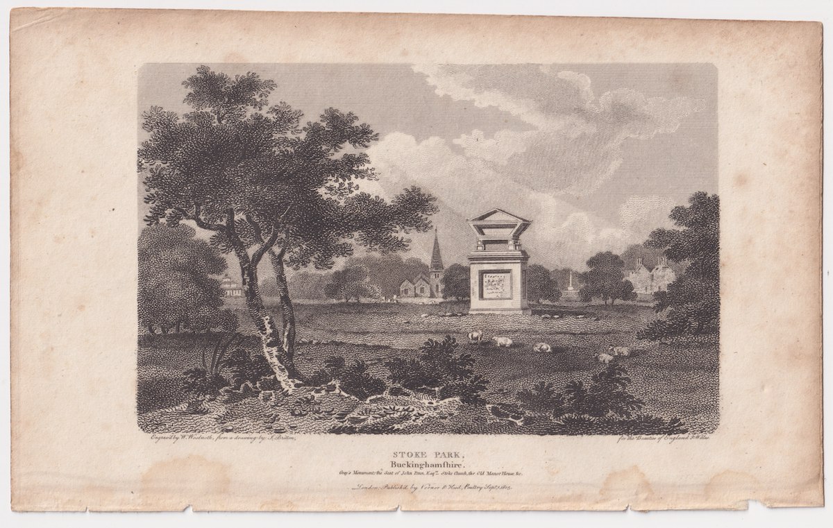 Antique Engraving Print, Stoke Park, Buckinghamshire,1805, 13 x 20.6 cm.