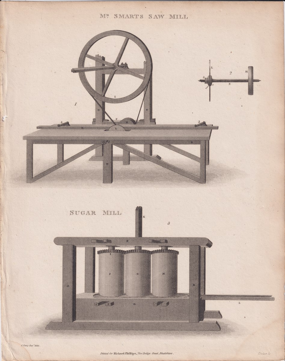 Antique Engraving Print, Sugar Mill, 1810, credit Antiche Curiosità©