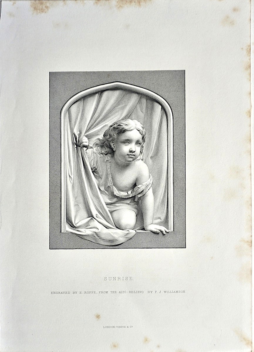 Antique Engraving Print, Sunrise, 1873, engraved by E. Roffe from the Alto-Relievo by F. J. Williamson, London, Virtue & Co. 32 x 23 ca.