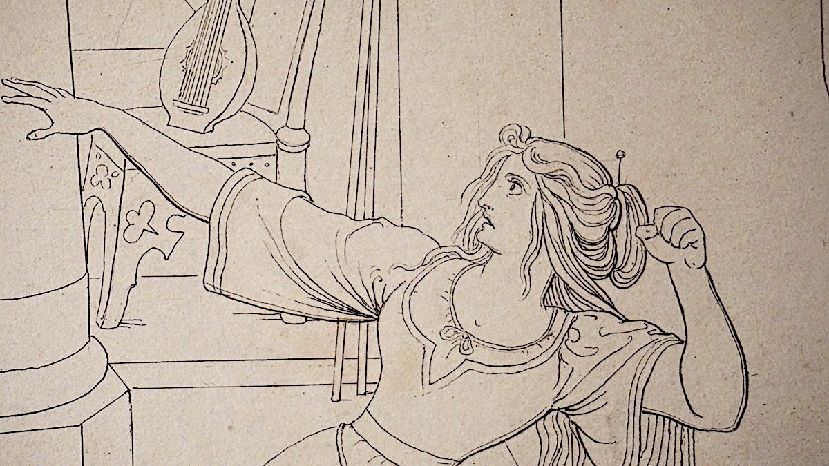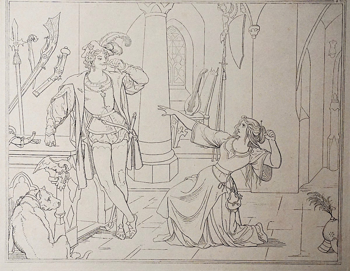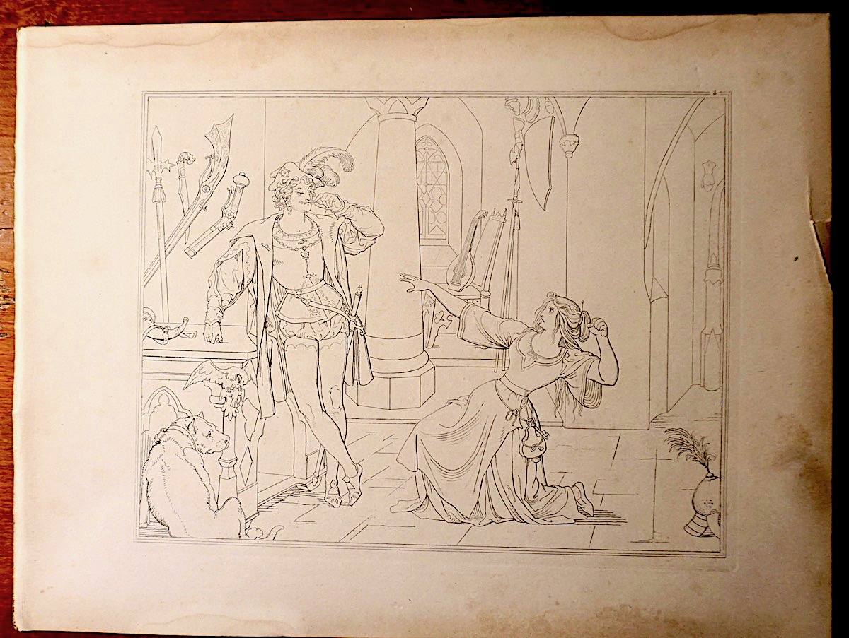 Antique Engraving Print, Supplicant scene, 1820, cm. 32 x 24, Rare.