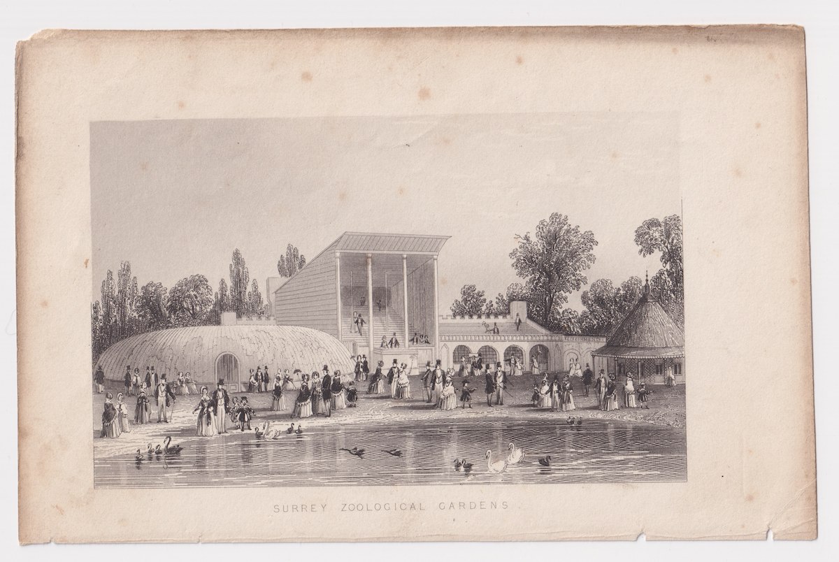 Antique Engraving Print, Surrey Zoological Gardens, 1850 ca. credit Antiche Curiosità©