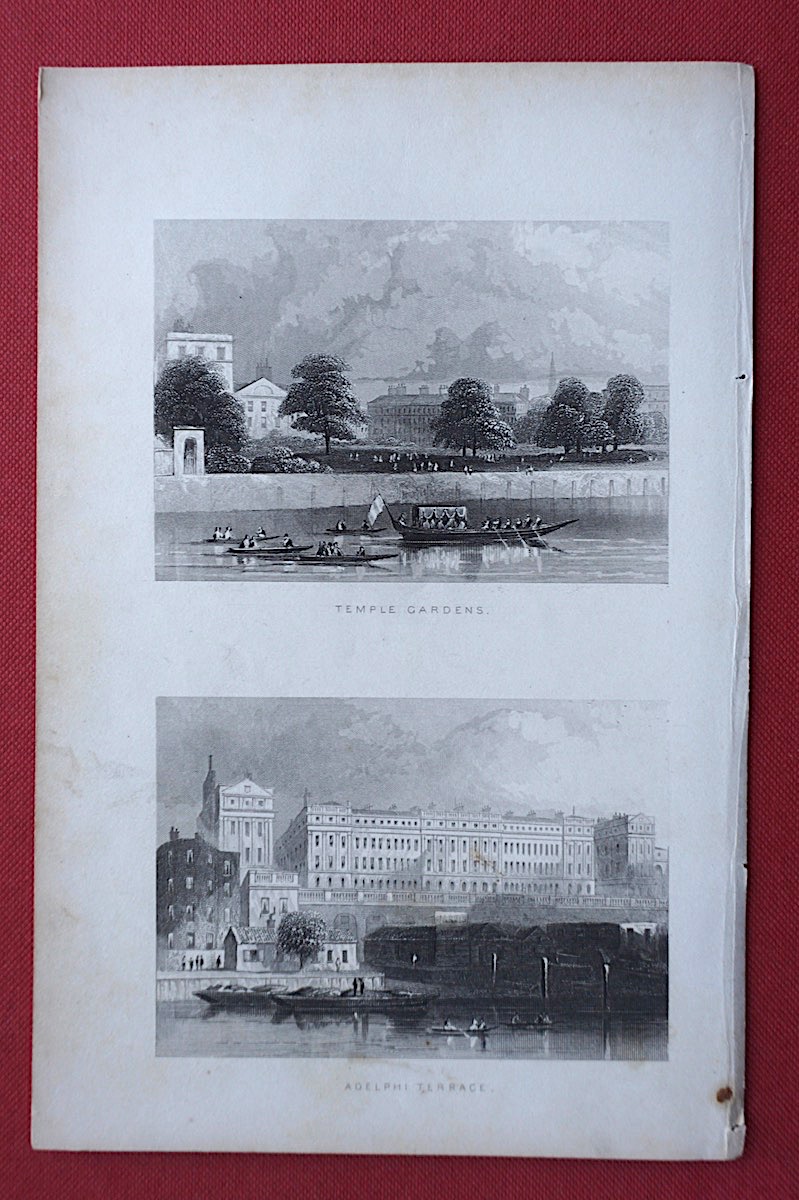 Antique Engraving Print, Temple Gardens; Adelphi Terrace, 1852, Credit Antiche Curiosità©