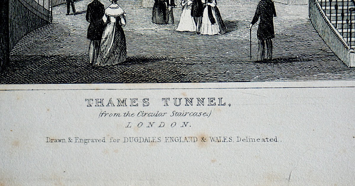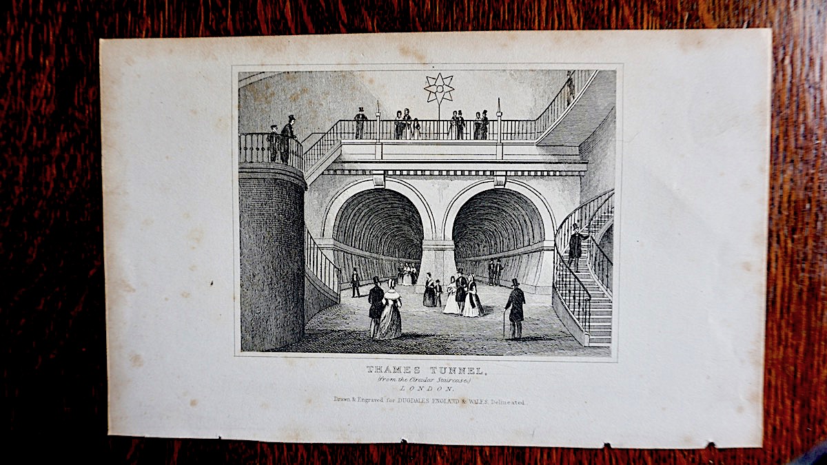 Antique Engraving Print, “Thames Tunnel”, London, Dugdales 1830, credit Antiche Curiosità©