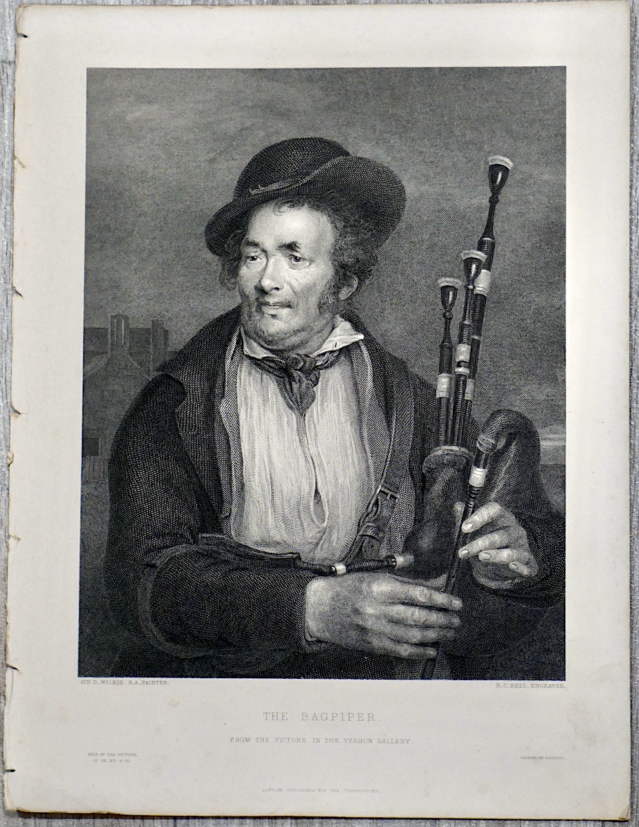 Antique Engraving Print, The Bagpiper, 1870, 24.5 x 32 cm.