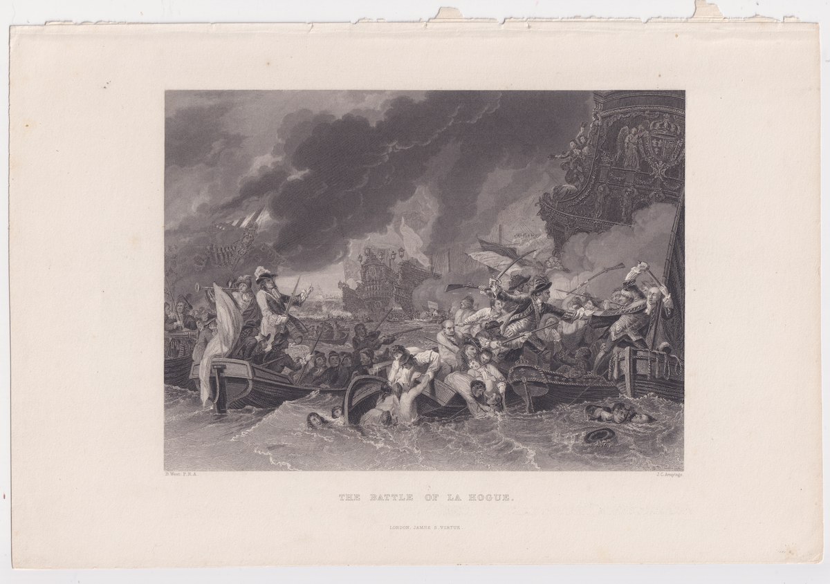 Antique Engraving Print, The Battle of La Hogue, 1820