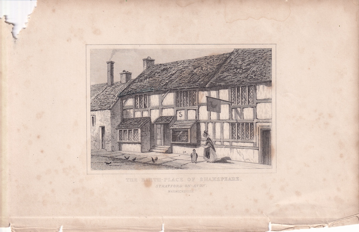 Antique Engraving Print, The Birth-Place of Shakespeare, 1840 ca., credit Antiche Curiosità©
