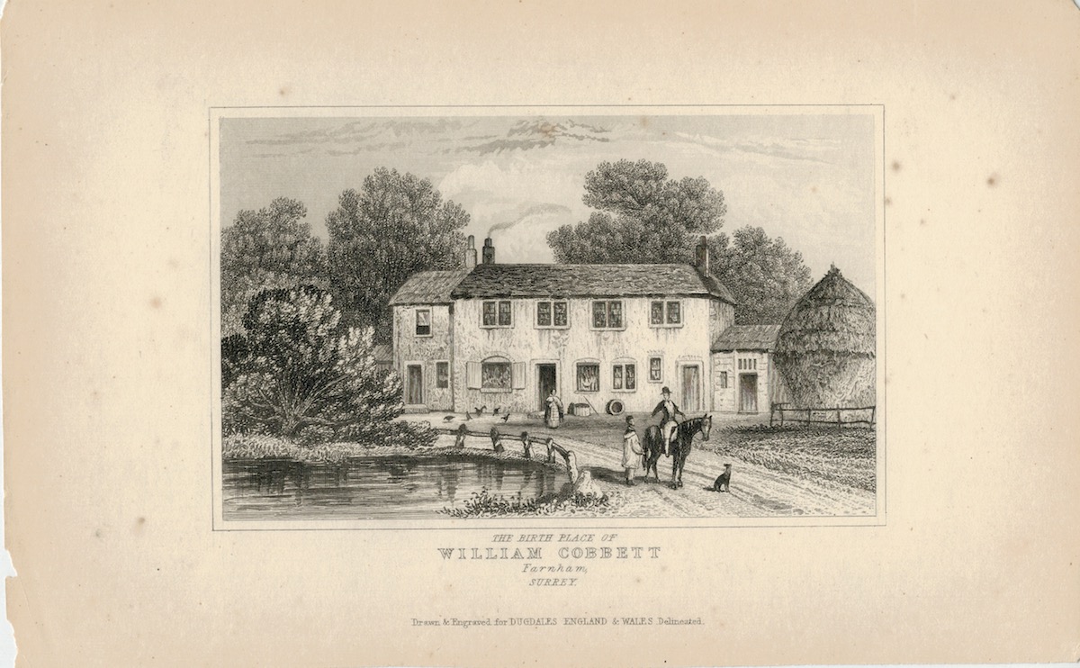 Antique Engraving Print, The Birth Place of the William Cobbett, 1930 ca., 21,6 x 13,5 cm. Surrey, Dugdales.