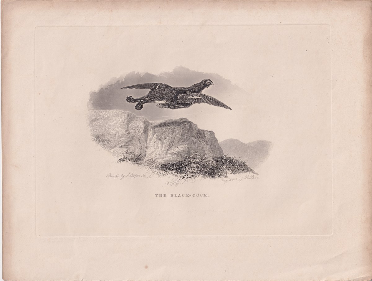 Antique Engraving Print, The Black-Cock, 1830 ca.