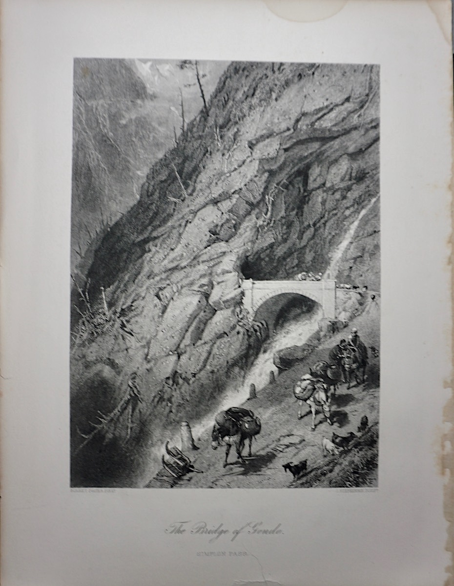 Antique Engraving Print, The Bridge of Gondo, 1873, engraved by J. Stephenson, 31,7 x 24,2 cm.