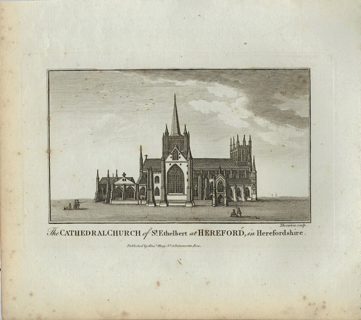 Antique Engraving Print, The Cathedral Church of St. Ethelbert at Hereford, 1770, cm. 22,5 x 20. Published by Alex Hogg.
