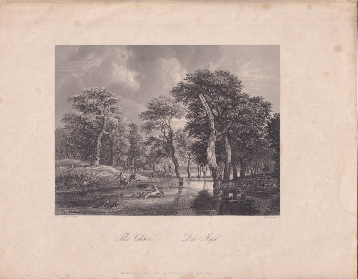 Antique Engraving Print, The Chase, 1840 ca. credit Antiche Curiosità©