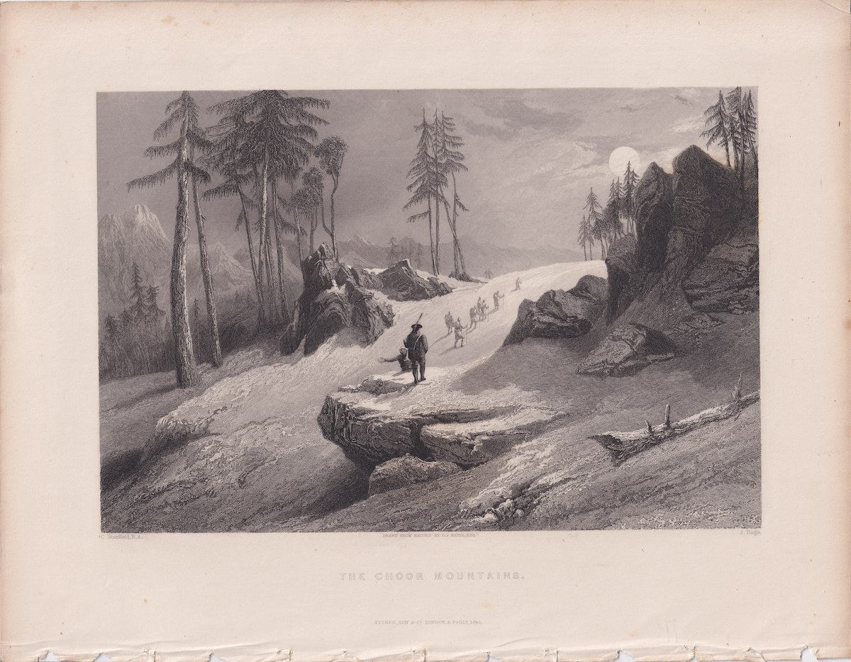 Antique Engraving Print, The Choor Mountains, 1845, credit Antiche Curiosità©